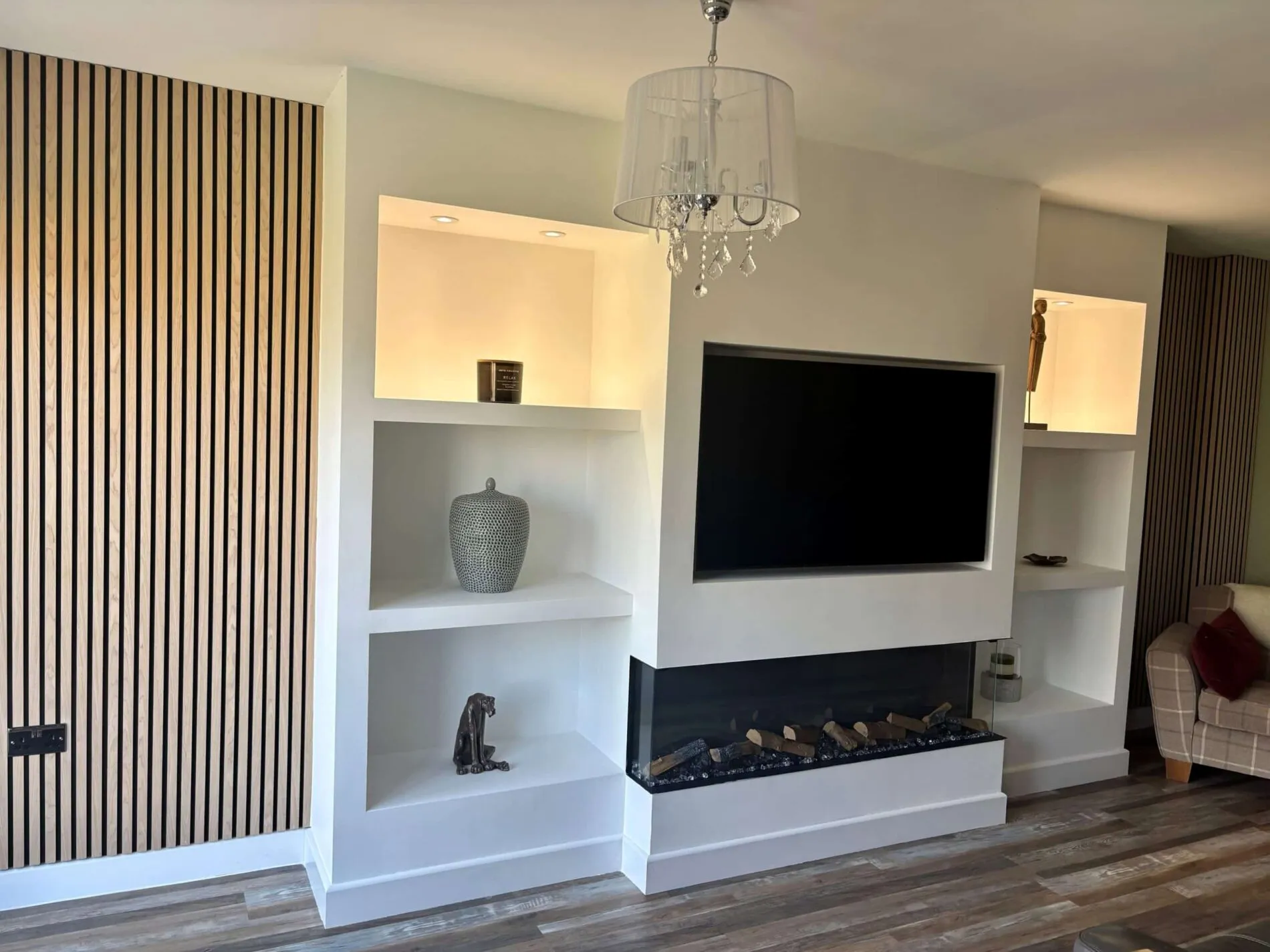 Built-in living room storage: less mess, more “hotel energy”